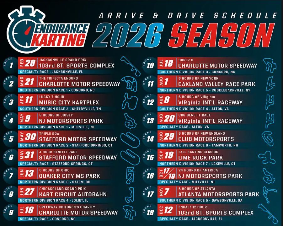 Our 2026 race schedule with Endurance Karting: